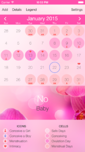 The application is based on the scientific research. It helps to determine the fertile days of the month, so you can either achieve or avoid pregnancy. The application uses the date of the last period and shows the date of the next period, the best days to conceive a baby, the ovulation day and when you can avoid pregnancy.
